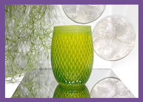 2022年2月2日縁起の良い作品展第二段に新作のグラスを2点追加いたしました。 幸運をつかむ「網目」紋様と、繁栄を願う「翁格子」紋様をモチーフにした 一点物のグラス。ぜひご覧下さいませ。