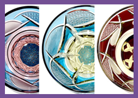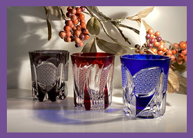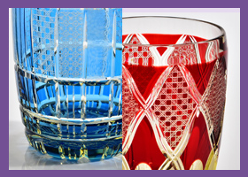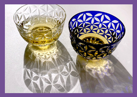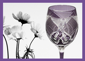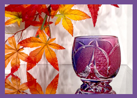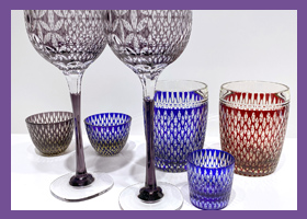今回の出来立て江戸切子は花をイメージした葡萄色のワイングラスをご紹介いたします。 様々な花をモチーフにデザインされた作品に加え、 完全にオリジナルでおつくりさせて頂く「秘密の花園」ワイングラスも。 ぜひご覧くださいませ。