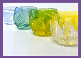2021年8月23日「おうちで楽しむ沖縄の旅」 今の季節にぴったりの沖縄琉球ガラスを使用した 特別な江戸切子を制作しました。 琉球ガラスならではの鮮やかな色彩に繊細な華硝のカッティングが 映える一点物の数々。 ぜひお楽しみくださいませ。