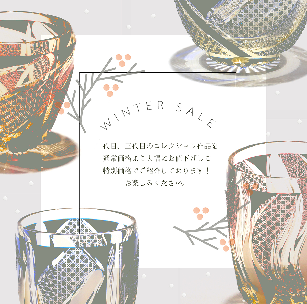 江戸切子の店 華硝では、若いスタッフを中心に工房の様子や江戸切子についての情報発信をしています。過去のお知らせをご覧になりたい方は、 こちらの「お知らせ」の記事一覧からご覧いただけます。