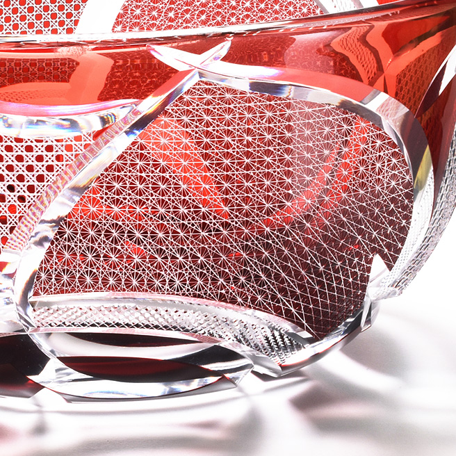華硝が手のかかるプレミアムな一点物を制作しお客様に迅速にお届けできるのはなぜでしょうか?それは、華硝の特徴である精緻で美しい紋様を速く正確にカットできる技術、また透明度の高い輝きを手作業で実現できる技術など、独自の制作メソッドを確立してきたからにほかなりません。華硝にしかできない高い技術が、このようなプレミアムな作品の制作を支えているのです。