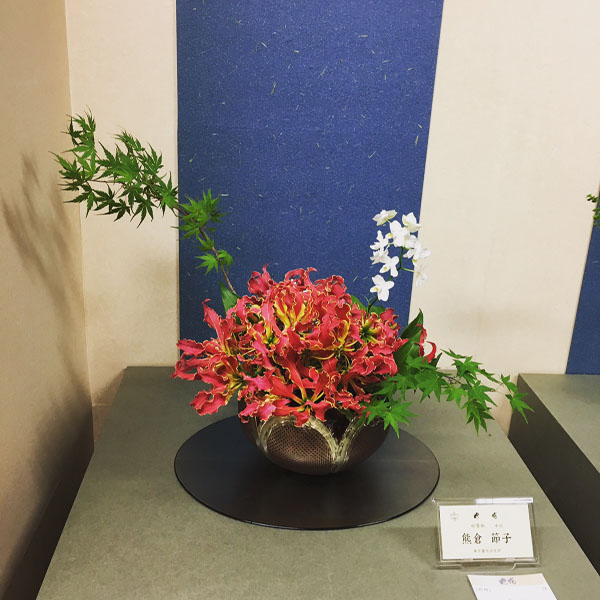 日本橋三越本店で開催中の池坊「花の力」に華硝の作品が展示されています。
