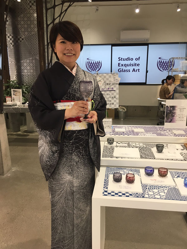 店舗で江戸切子を持ってぱちり。