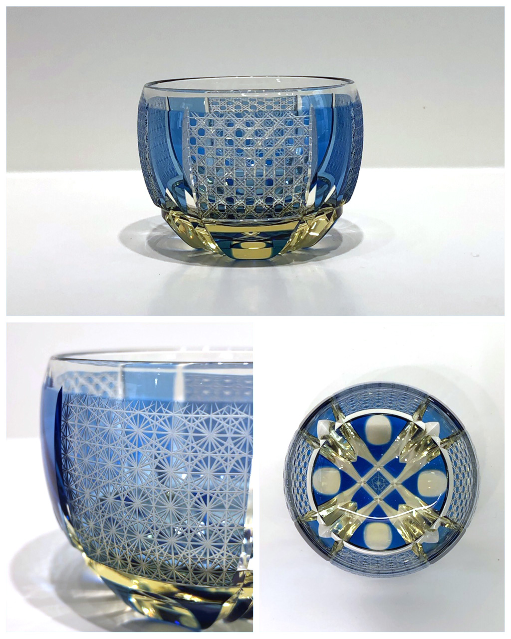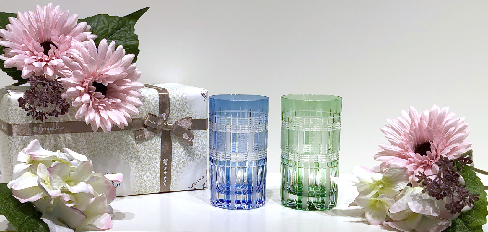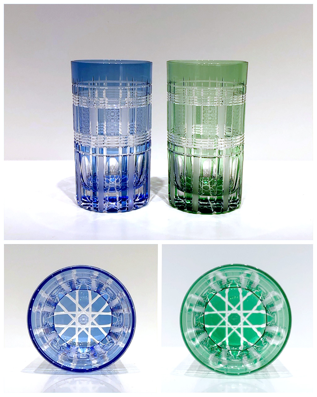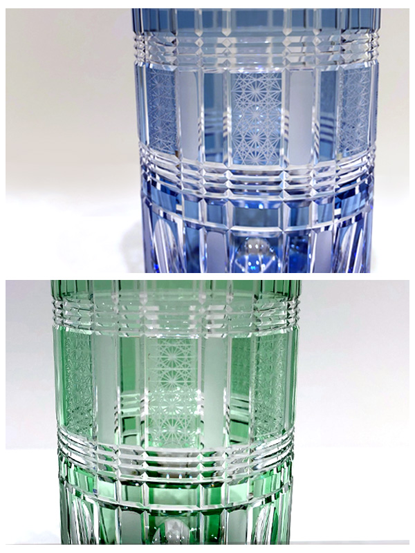 優しい水色と緑の色味に、すりガラスと繊細なカットが柔らかい印象が魅力の作品です。