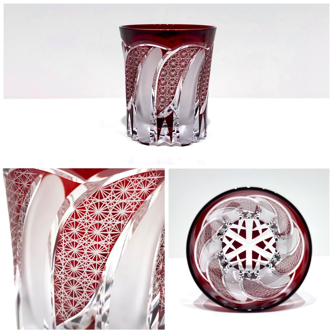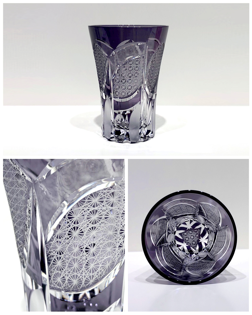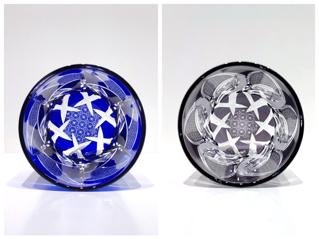 タンブラーのように天開型の作品は、覗き込んだ際の紋様の広がりと