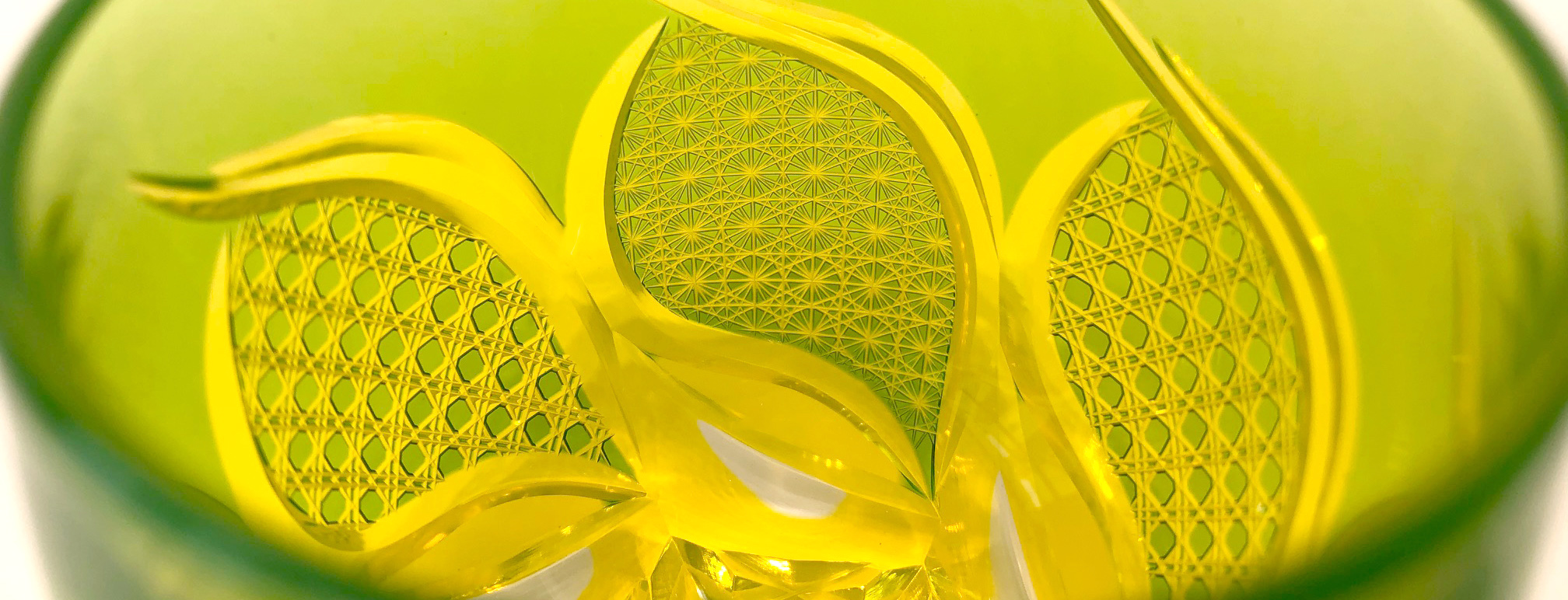 江戸切子は異なる色のガラスを重ねて吹くことで