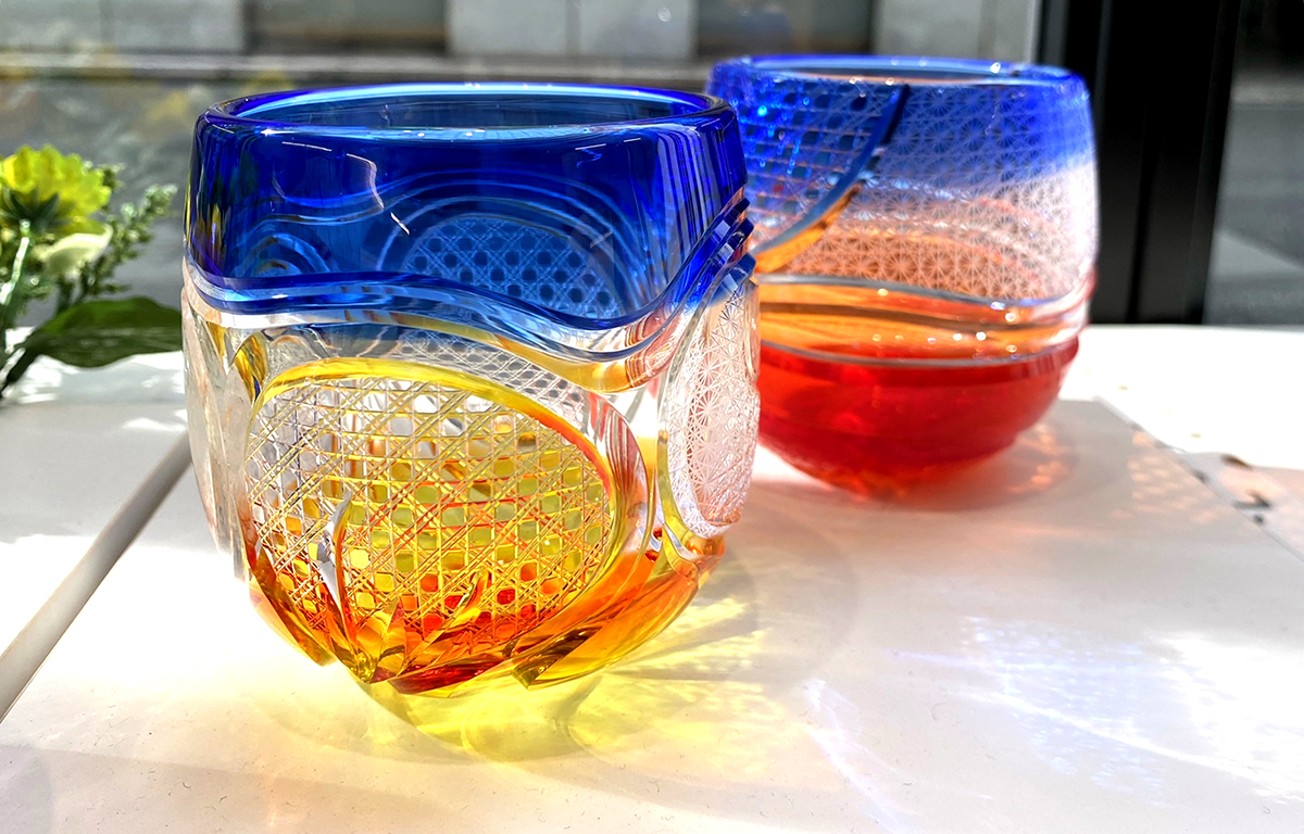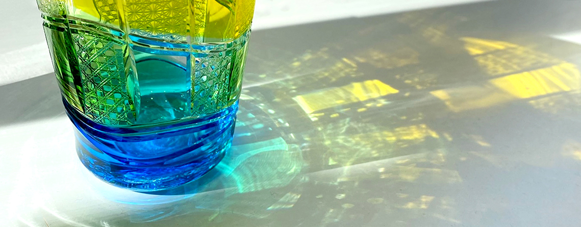 琉球ガラスに華硝の繊細なカットを施し、