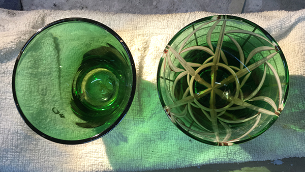 今日は会長が、アンバーグリーンのオールドグラス(新作)を制作していました。