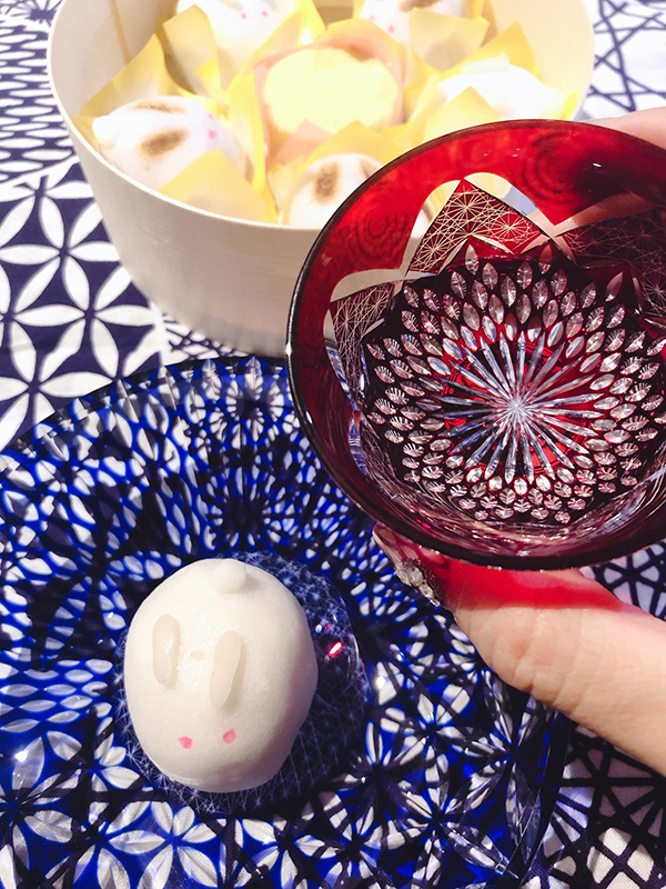 ネイビーブルーの切子のお皿にのせて華やぎを。