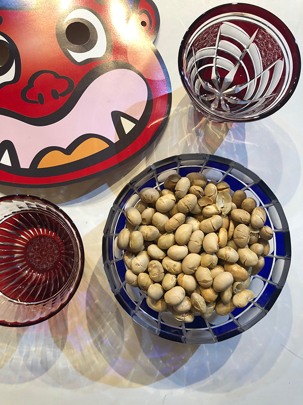 夕暮れになってから鬼に豆をぶつけて追い払う。