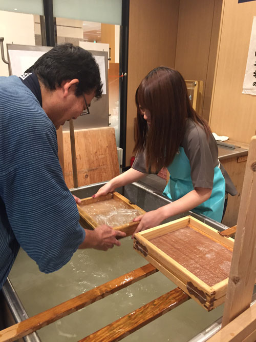 華硝スタッフによる和紙漉き体験