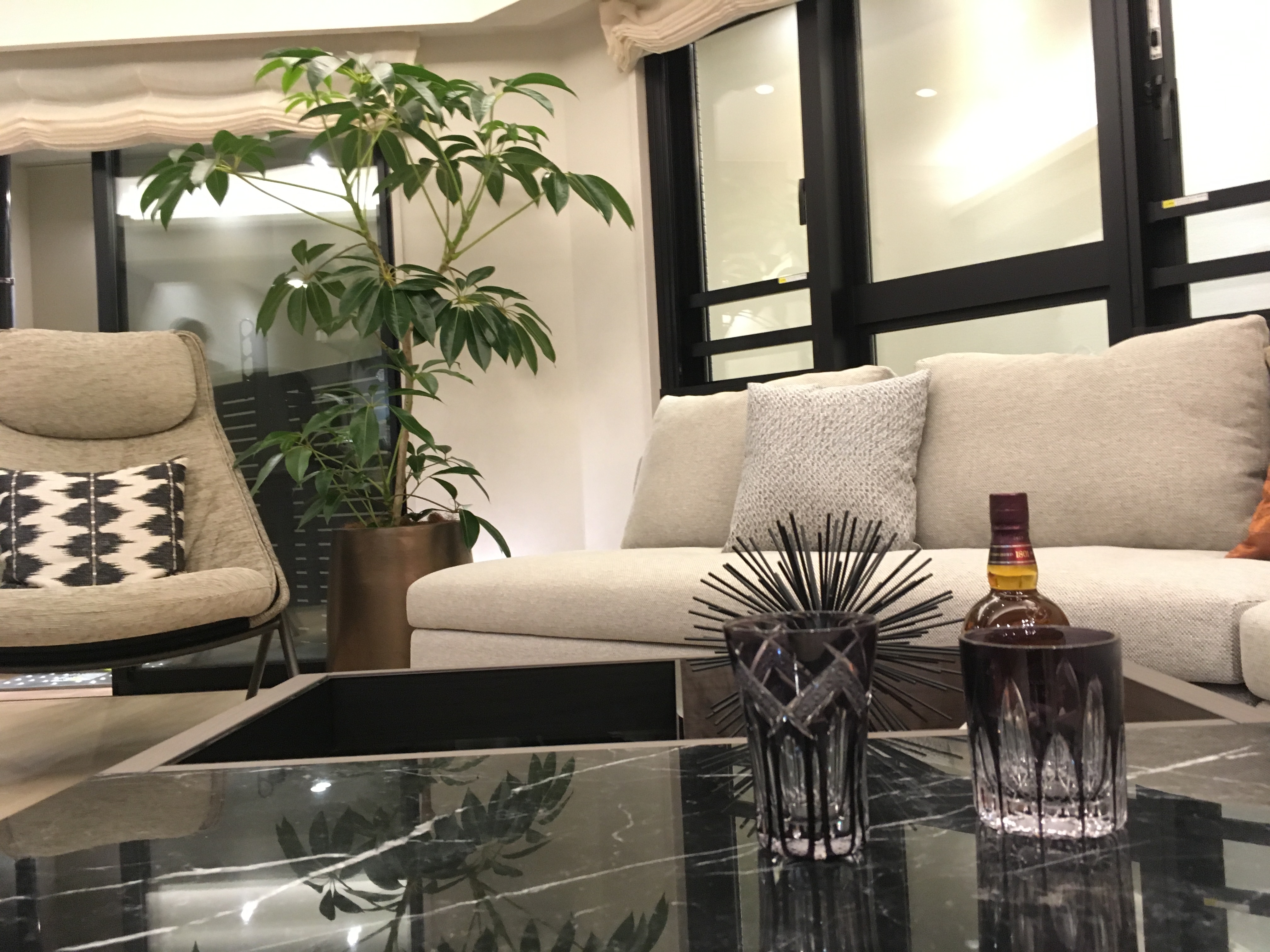 華硝の商品がマンションギャラリー内を彩る展示をいたしております。