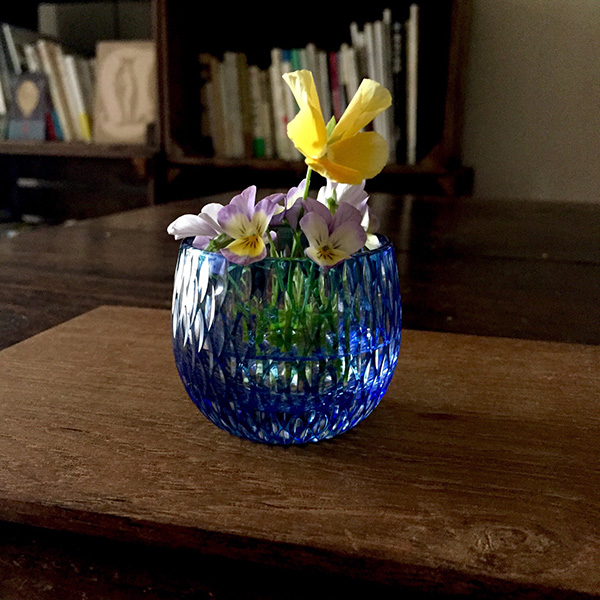摘んだ花を水の入ったぐい呑に飾っておくと、