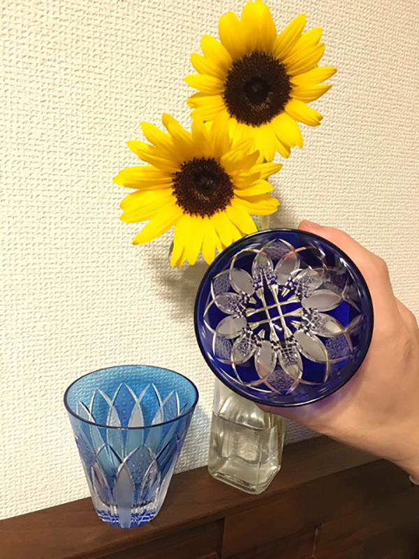ヒマワリと江戸切子