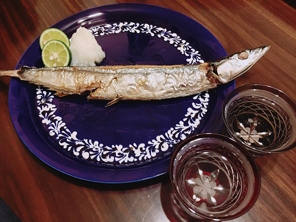 秋刀魚と江戸切子