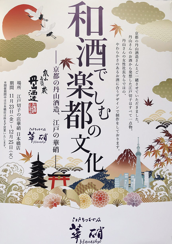 京都・嵐山にある丹山酒造さんで、日本橋店で11月23日からやっているイベントでは「和酒で楽しむ都の文化」という企画でご一緒させていただいている酒造さんです。