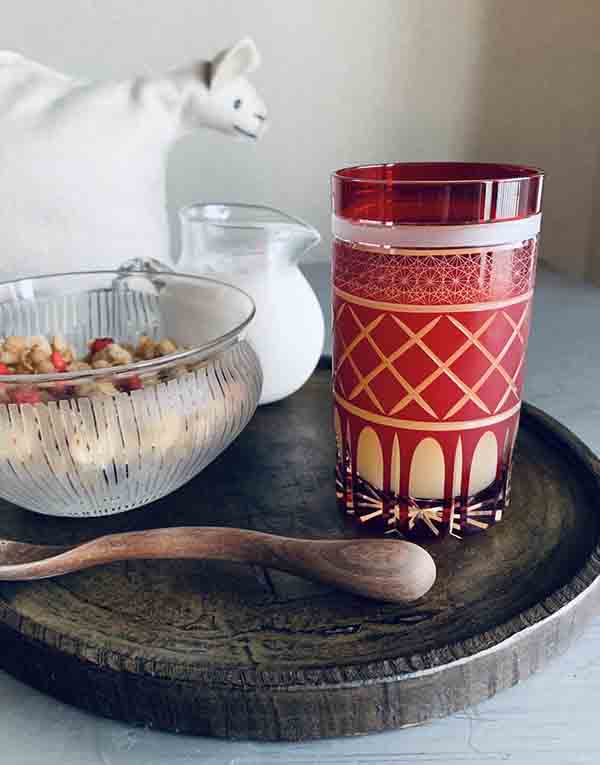 赤いグラスは見ているだけでもポジティブになれますし、使うと自然と元気になる気がします。