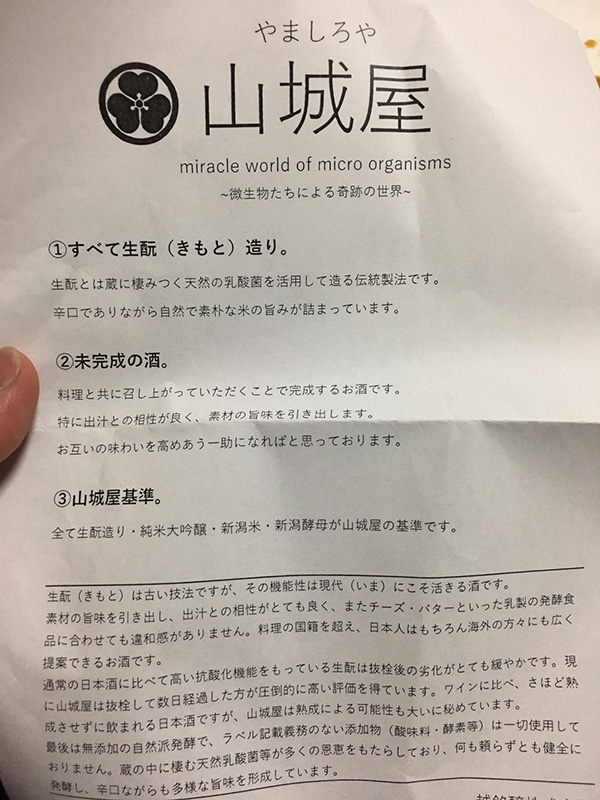 山城屋という日本酒のブランドは間違いなく美味しいので是非呑んでみてください。