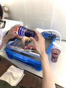 まず、この方は入門コースから中級の全てのプログラムを修了し、2年ほど前からグラスの種類を変えながら次々と自由制作を進めています。