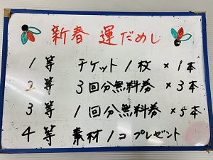 教室では先週から「新春 運だめし」企画として、来ていただいた方にくじ引きを用意しています。