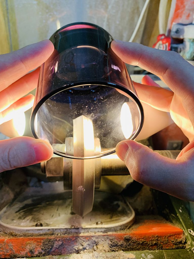 カットする際にグラインダーやグラスを照らすライトを作業しやすい最適な位置に調整する必要があります。